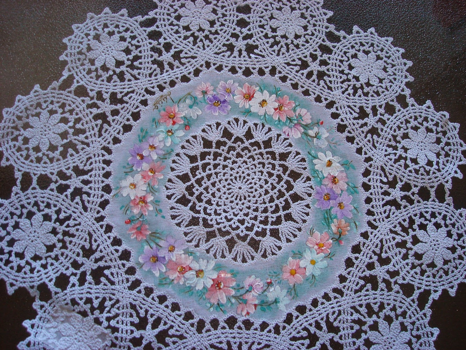 ESTES GUARDANAPOS DE PLÁSTICO IMITANDO CROCHE ,TMB PINTADOS COM TINTA DE TECIDO.